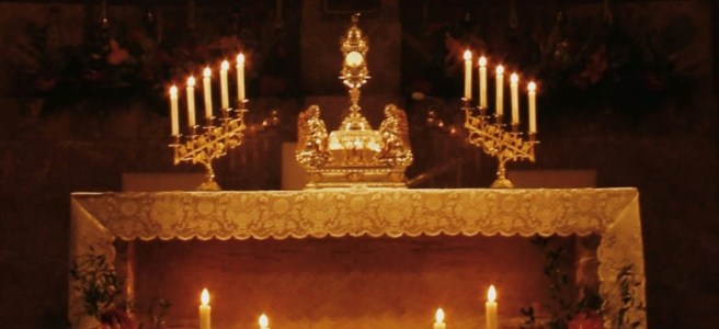 “Worship God!" Rev. 22:9 When life is troublesome, and wars rage around us, when we feel helpless, it’s time to seek the source of life. The One who is our strength when we are weak. The priest bows deep to the Blessed Sacrament before he retreats from the altar with careful steps. The candles on … Continue reading Adoration